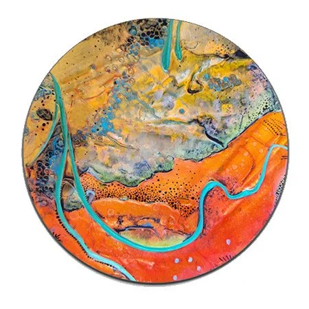 I am a color pusher. With the tools of my trade, bought and made, folding, building, hiding, marring and marrying. The narrative of life ensues; each line akin to a wrinkle, something that took place over time. Through an intuitive process, I communicate in waves on a panel, each layer of paint achieves ridges, peaks and valleys, then transparency depth and color. A narrative derived from experiences, mistakes, and possibilities.